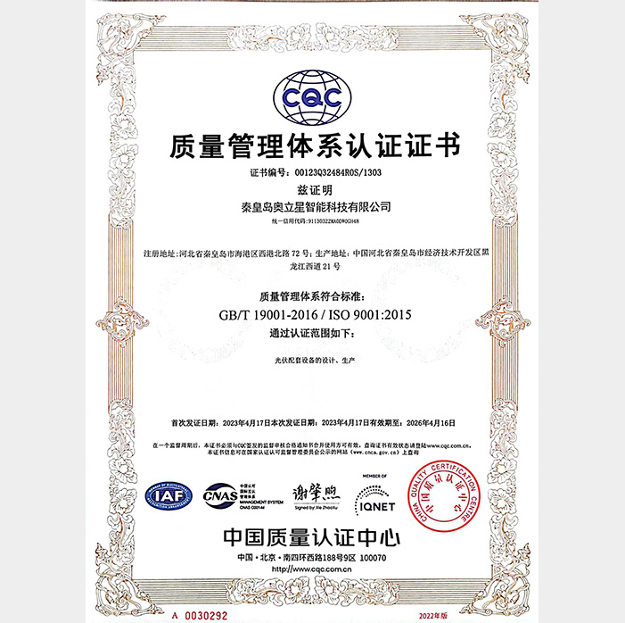 秦皇島奧立星智能科技有限公司成立于2019年,位于河北省秦皇島市,是一家集研發(fā)、制造和銷售為一體的光伏自動化成套設備的企業。憑借多年的自動化研發(fā)制造經驗,奧立星公司已成為光伏組件廠家的合作伙伴,客戶遍及二十余省、市、自治區,產品遠銷韓國、東南亞多個國家和地區,并以優(yōu)質的產品和售后服務贏得世界光伏行業的青睞。